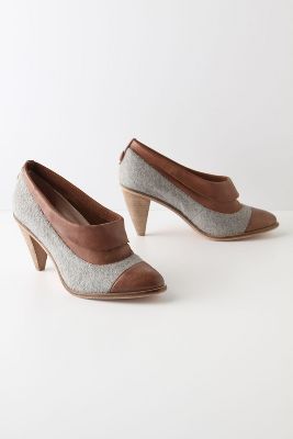 These shoes are edgy, yet look really stylish and comfortable! A super cute bootie for this Fall season with its play on fabric and leather. Wooly felt and supple whisky or midnight leather team up to create this menswear-inspired staple. From Plenty by Tracy Reese, as featured on Anthropologie.